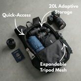Capacidad Adaptativa de 20L: Suficientemente espaciosa para un cuerpo de cámara, lente extra, chaqueta y hidratación.
